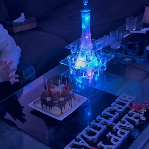 お子様の誕生日にはジュースタワー。ケーキの持ち込みオッケー。BBQのデザートタイム時には52席あるラウンジルームに移動して頂きます♪ラウンジルームでは大画面のモニターでカラオケなども無料でご利用頂ける為、BBQ後の二次会での利用にも大人気です!※お一人様辺り+600円(税込)で30分の延長も可能です。